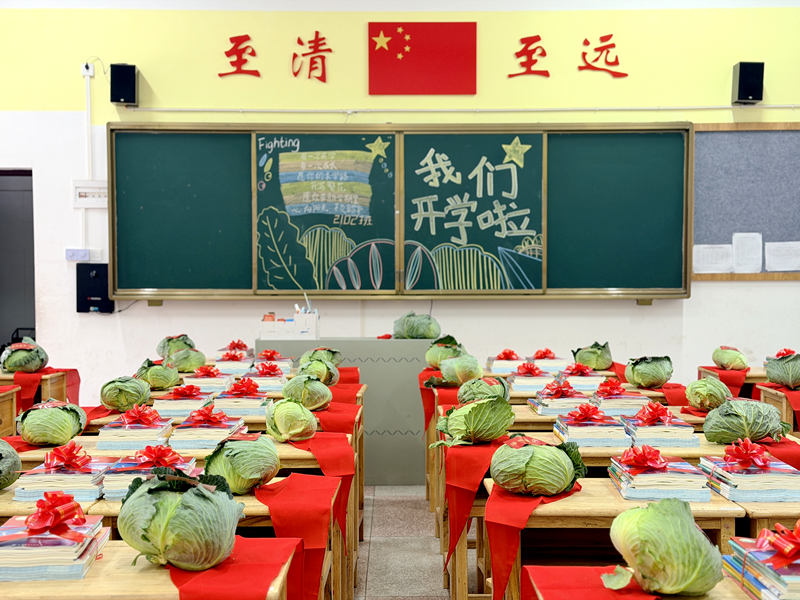本网讯 3月4日,安化县梅城镇芙蓉学校迎来2026年春季学期开学首日。随着千余名“芙蓉娃”返校,历经寒假沉寂的校园顷刻间重现蓬勃生机。学校秉持"一马当先"的奋斗精神,高度重视开学工作,提前筹划、细致排查、精心布置,确保新学期各项工作平稳有序推进。梅城镇人民政府党委委员、党委副书记、镇长王强、梅城镇中心学校党总支副书记刘志灵、总务主任冯佑民一行莅临学校指导开学工作。 2102班为同学们准备的开学礼物格外吸睛——每位学生都收到一颗翠绿卷心菜。班主任笑着解释:“‘卷心菜’谐音‘卷才’,既寓意‘卷进才华’‘包你成才’,层层菜叶更象征知识的积淀与智慧的孕育。”孩子们手捧这份特别的入学礼,脸上洋溢着惊喜与感动,纷纷表示要像卷心菜一样,在新学期“卷”出成长与收获。系着红丝带的新课本整齐排列,缤纷气球与香甜牛奶将教室装点得温馨雅致,浓厚的节日氛围扑面而来。黑板报上“我们开学啦”的亲切问候与“策马扬鞭”“马到成功”等马年励志标语交相辉映,尽显芙蓉教育工作者对学子的深情关怀与殷切期盼。高年级琅琅读书声划破校园宁静,宣告新学期正式启航。 风正潮平,自当扬帆破浪;任重道远,更须策马扬鞭。2026年适逢农历马年,在这充满希望的新春之际,梅城镇芙蓉学校全体师生正以饱满的工作热情,昂扬奋进、锐意进取,于新征程上奋力奔跑,共同谱写育人新篇章。 初审初校:谭媛媛 复审复校:俞泽军 终审终校:彭海鹏