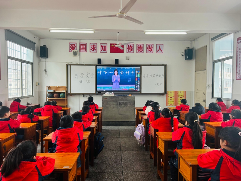 本网讯 为切实加强校园安全教育,全面提升小学生安全防范意识和自我保护能力,营造平安、和谐、文明的校园环境,3月5日,梅城镇望城完小开展“开学安全教育第一课”主题教育活动,为新学期校园安全工作开好头、起好步。 当天第一节课,由各班班主任精心组织,按照省教育厅要求组织学生认真观看安全教育视频《种下一颗金种子》。课间操时间,政教处围绕校园安全、交通安全、消防安全、食品安全、防溺水安全、春季传染病预防、防校园欺凌等重点内容展开讲解。在校园安全方面,重点强调课间文明活动、不追逐打闹、上下楼梯靠右行、不做危险游戏等日常行为规范;交通安全教育中,提醒学生遵守交通规则,文明过马路,不乘坐无资质车辆;消防安全方面,普及火灾逃生方法、正确报警方式、不玩火玩电等常识;同时结合春季特点,强调注意饮食卫生、远离危险水域、做好个人防护预防传染病。 安全无小事,警钟须长鸣。此次“开学安全教育第一课”主题教育,将安全教育落到实处,有效增强了全体学生的安全意识和自我保护能力。新学期,望城完小将持续把安全教育融入日常教学,常态化开展安全宣传与演练,全力守护学生健康成长,为建设平安校园提供坚实保障。 初审初校:李咏如 复审复校:郭世佳 终审终校:周倩