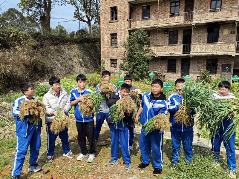 本网讯 3月5日,烟溪镇中学的劳动实践基地里一片繁忙景象,迎来了建成后的首个丰收季。各班学生分批走进属于自己的“责任田”,亲身参与采摘,在泥土芬芳中感受劳动的艰辛与收获的喜悦,将劳动教育从课堂延伸至田野。 中午休息时间,七年级2501班的劳动责任田里格外热闹。在班主任刘孟颖老师的带领下,班上的男同学们正采收他们上学期亲手种下的葱和蒜。半年前埋下的种子,如今已是一派葱茏:葱苗挺拔翠绿,蒜苗肥硕鲜嫩。同学们分工协作,有的负责拔取,有的则细心地将采收的蔬菜整理捆扎。尽管动作尚显生疏,但每个人都全神贯注,田间地头不时传出阵阵欢声笑语。 采收现场,刘老师一边向同学们示范如何正确采摘以保证蔬菜继续生长,一边与大家交流:“从翻地、播种到浇水、除草,这一季的葱蒜凝聚了大家大半年的心血。劳动不只是流汗,更是体会‘粒粒皆辛苦’的过程,希望你们能真正懂得珍惜与感恩。”实地的言传身教,让同学们对劳动的价值有了更深的体会。 面对丰收的成果,参与采摘的同学们难掩兴奋。一位同学一边捆扎手中的蒜苗,一边对老师说:“看到自己种的东西真能长得这么好,特别有成就感!以前觉得种地很简单,自己从头到尾干下来才知道这么不容易。以后吃饭我一定不会再剩饭了。”朴实的话语,道出了劳动教育带来的真切改变。 据了解,自该校劳动实践基地建立以来,学校便将劳动教育纳入常态化课程。通过划分班级责任区,让学生全过程参与作物的播种、管护与采收,将学科知识与生活实践相结合,让教育回归本真。此次采摘活动,不仅让学生亲手收获了自己劳动的果实,更在实践中磨砺了意志,涵养了尊重劳动、热爱劳动的优秀品格。 初审初校:谌盛琴 复审复校:刘洪丁 终审终校:刘开颜