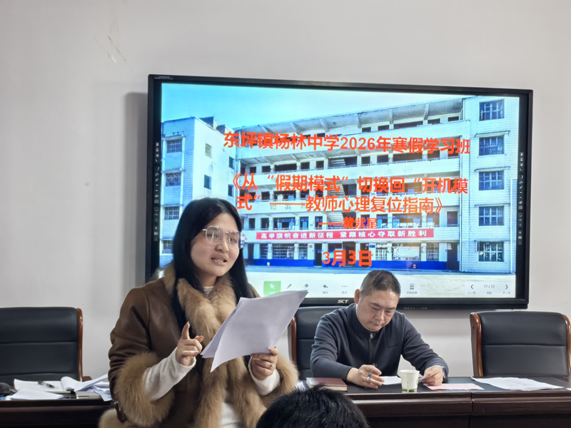本网讯 2026年3月1日至3日,东坪镇杨林中学成功举办寒假教师学习班。本次学习班旨在帮助全体教师从“假期模式”平稳切换至“工作模式”,为新学期蓄力赋能。 学习班内容全面,围绕“意识形态、师德师风、校园安全、心理调适、开学部署”五大模块展开。全体教师深入学习了《新时代中小学教师职业行为十项准则》等文件,签订了师德与安全责任状,筑牢了思想与安全防线。学校党支部书记、校长李欧做了学校工作报告,并对先进个人进行表彰。 特别值得关注的是,为帮助老师们更好地进行心理调适,学校安排了专题心理健康指导。由黄紫星老师主讲的《从“假期模式”切换回“开机模式”——教师心理复位指南》专题分享,为老师们提供了实用的心理调适策略与方法,助力大家以积极、平稳的心态迎接新学期的工作挑战,体现了学校对教职工身心健康的深切关怀。 通过三天充实的学习,全体教师统一了思想,提升了专业素养与心理准备,已整装待发,将以最佳状态迎接新学期的到来。 初审初校:罗 毅 复审复校:王择政 终审终校:李 欧 |