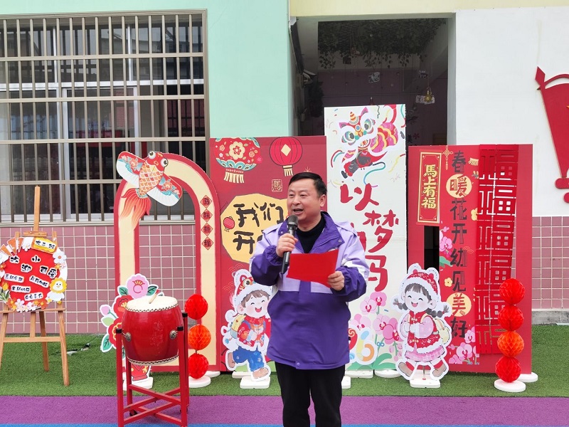 本网讯 3月6日,烟溪镇中心幼儿园举行“马年启新程·萌娃乐满园”主题开学典礼。全体师幼齐聚,仪式庄重有序。 活动在萌娃有序入场中拉开帷幕,大一班幼儿担任升旗手,全体人员肃立行注目礼、齐唱国歌,厚植爱国情怀。园长刘武刚向全体幼儿送上新学期祝福,鼓励幼儿健康快乐、勇敢自信成长。教师蒋剑作出承诺,将以爱心与责任心陪伴幼儿,坚持游戏中学习、关爱中成长。幼儿代表分享新学期愿望,展现积极向上的精神面貌。 仪式尾声,幼儿击鼓启航,全体师幼高举气球棒齐声喊出“马年,你好!新学期,你好!”,典礼圆满落幕。此次活动凝聚园所向心力,营造了温馨向上的开学氛围。 初审初校:刘如君 复审复校:张雄 终审终校:刘武刚