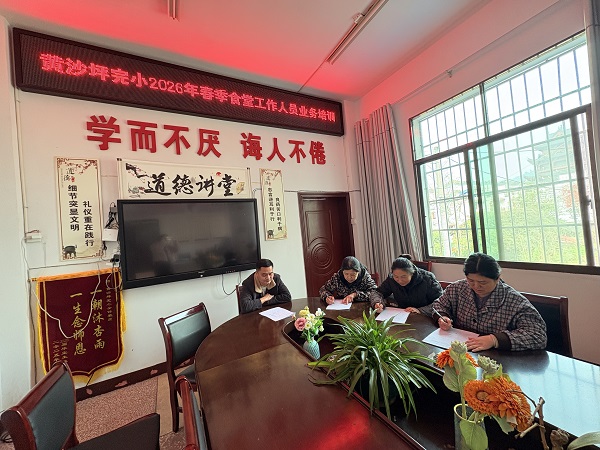 本网讯 3月14日,黄沙坪完小开展食堂工作人员专题培训,为全体工友上好新学期"安全第一课"。