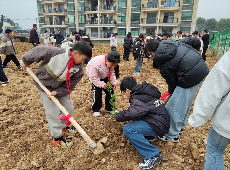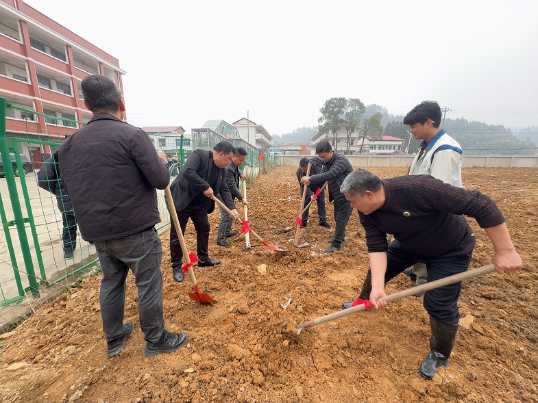 本网讯 3月12日,在第47个植树节当天,长塘镇克明学校以党建为引领,组织党员教师及师生代表隆重举行了劳动教育实践基地启动仪式暨植树节实践活动。 活动伊始,该校少先大队辅导员曾荦向大家介绍出席本次活动的嘉宾:克明学校校长蒋喜良、长塘镇中心校廖志中、王立,通溪村支书姚智、乡村振兴工作队领导邓勇、陶磊、周胜,以及社会爱心企业家邓建明先生。 启动仪式上,蒋喜良发表了致辞。他指出,劳动教育是“五育并举”的重要组成部分,学校劳动教育实践基地的正式启用,旨在让学生在亲身实践中接受劳动锻炼、提升动手能力、培养劳动习惯,真正实现以劳树德、以劳增智、以劳强体、以劳育美。姚智也在发言中对学校劳动教育实践基地的建设表示支持与期待,希望校村携手,共同为学生成长赋能。 仪式结束后,植树实践活动正式开始。本次植树活动分四批次有序进行,现场更是一派热火朝天的忙碌景象,校村党员干部发挥模范作用,带领师生们参与植树。全体人员撸起袖子,挥锄挖土、扶苗填坑、浇水灌溉,分工协作、默契配合。橘树、脐橙树、乌梅树、桃树、石榴树、桂花树等树苗迎风挺立,为校园增添了浓浓生机。 “手拿锄头,鞋上沾泥,脸上淌汗,这才是真正的劳动教育。”党员教师何梅感慨道。三年级学生姚文轩兴奋地表示:“今天和老师、同学一起种下果树特别有意义,我亲手种下了小树苗,以后会照顾它,和小树苗一起成长。” 此次活动将植树节与劳动教育深度融合,让学生在实践中体验劳动快乐、增强劳动意识、提升劳动技能。该校负责人表示,学校将以此次劳动教育实践基地启动为新起点,全面落实五育并举要求,持续深化劳动教育内涵,不断强化学生动手实践能力。后续,学校将在基地内开辟六大块班级蔬菜种植区,实行班级负责制,由教师组织指导、邀请家长参与助力,常态化开展种植实践、田间管理、收获分享等劳动体验活动,让劳动教育真正融入校园、扎根课堂,促进学生德智体美劳全面发展。 初审初校:陈 岚 复审复校:姚妙峰 终审终校:蒋喜良