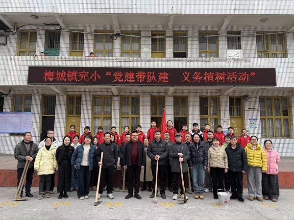 3月12日,梅城镇完小的校园里多了几分忙碌的热闹。党员老师们带着一群学生,拿着铁锹、水桶,在空地上忙活开来。今天是植树节,他们要完成的不只是种树,更是一堂特殊的“实践课”。 没有刻板的说教,一切从动手开始。党员老师们先示范了挖坑的深度,又手把手教孩子们扶稳树苗、回填泥土。低年级的小朋友攥不住大铁锹,就蹲在旁边帮忙踩实脚下的土;高年级的孩子两两一组,一个扶树、一个浇水,分工得清清楚楚。 阳光洒在沾满泥土的手背上,孩子们的额头渗出了汗,但没人喊累。每填一抔土、每浇一桶水,都是一次实实在在的体验。有孩子小声问老师,这棵树要多久才能长大?老师笑着回答,就像你们一样,慢慢扎根,慢慢长高。 栽好的树苗笔直地立在春风里,旁边的小牌子上,孩子们写下了自己的名字和对小树的祝福。风一吹,枝叶轻轻晃动,像是在回应孩子们的期待。 活动结束后,孩子们没有立刻离开。几个低年级的孩子又跑回树旁,仔细检查土有没有踩实;高年级的同学则围在一起,讨论着该怎么给小树定期浇水、除草。他们知道,这棵树不仅是春天的风景,更是自己亲手种下的一份责任。 初审初校:姚钢台 复审复校:高永健 终审终校:喻选民