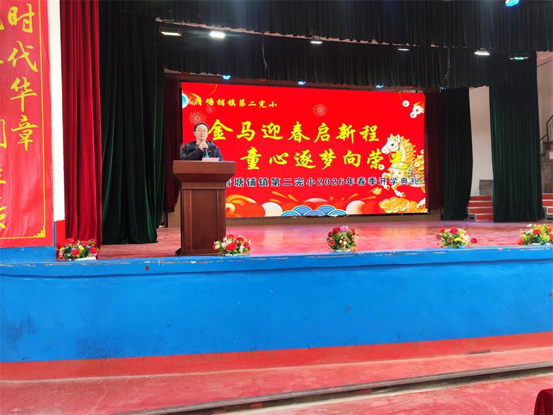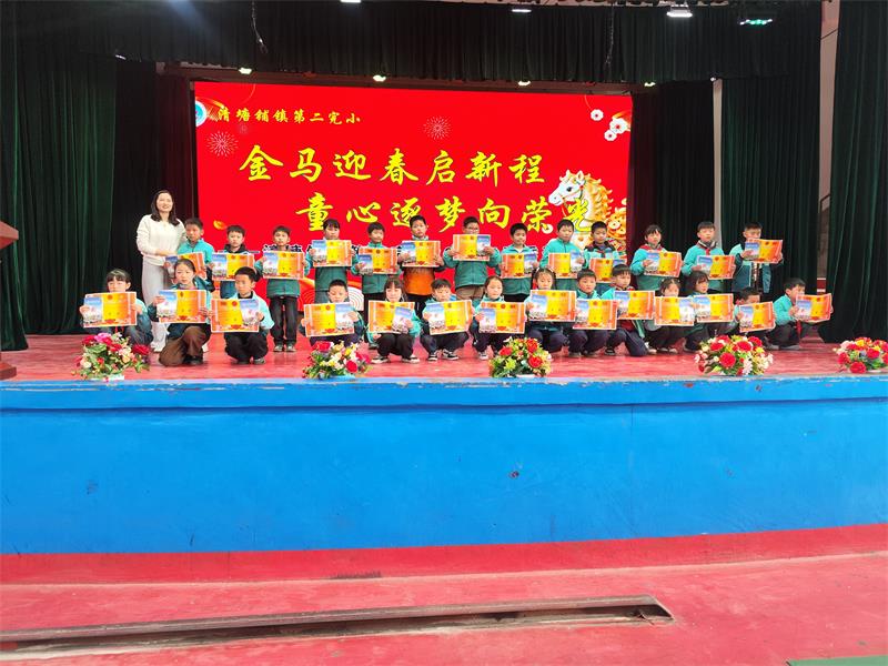本网讯 3月12日,清塘铺镇第二完小全体师生齐聚风雨球场,举行了以“金马迎春启新序 童心筑梦向荣光”为主题的开学盛典,场面隆重热烈,幸福温馨。 在庄严的国歌声中,全体师生肃立注目,少先队员行队礼。 该校校长廖献军为典礼致辞。廖献军全面回顾了该校上学期取得的诸多成绩:“县经典诵读获一等奖”“县建制班合唱比赛一等奖”“益阳市书香校园”…… 希望大家在新学期争做勇敢自信的“小骏马”、奋力拼搏“千里马”,不断超越自我,争创佳绩。 教导主任谭米玲宣读了授奖名单,一大批优秀班级和寒假社会实践活动积极分子受到了表彰。孩子们手捧鲜艳的奖状,接过老师精心准备的甘蔗、芒果等有趣的奖品,脸上洋溢着幸福与自豪。 即将毕业的龙筱雅同学登台发言:她表示一定不负韶华,不负时代,为祖国的富强而发奋学习。 开学典礼还在场外展示了孩子们精美的手工制作,一幅幅以马年为主题的作品上,栩栩如生的骏马,博大精深的龙马精神,让人流连,催人奋进。 初审初校:杨卫 复审复校:龙艳萍 终审终校:廖献军