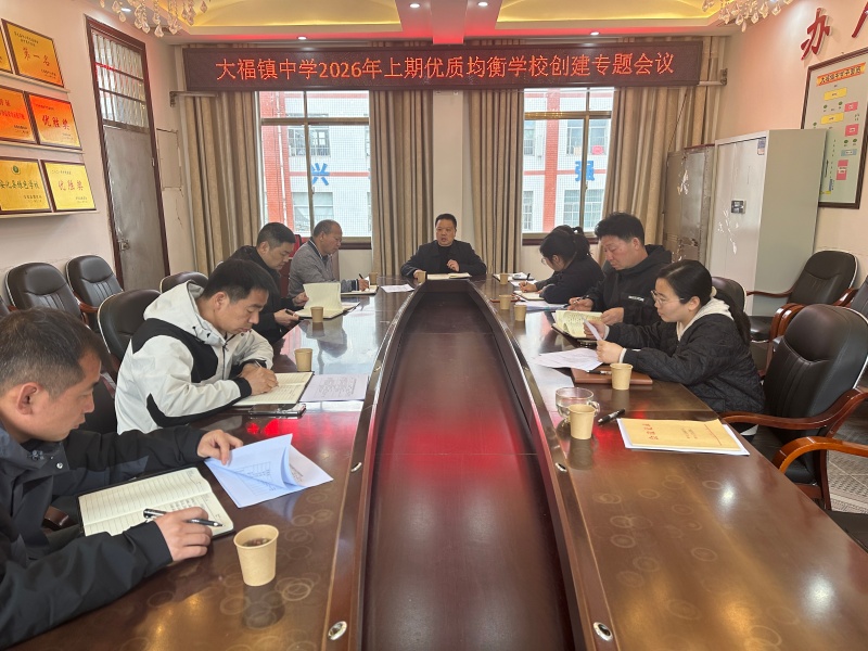 本网讯 4月21日,大福镇中学召开2026年义务教育优质均衡发展工作推进会,全体校务成员参加。