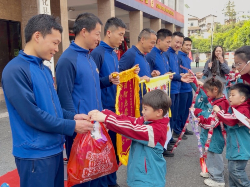 本网讯 为强化幼儿消防安全教育,提升安全自护能力,4月24日,启稚上海城幼儿园小一班、中一班、中三班全体师幼及家长志愿者走进安化县消防救援局,开展“走进火焰蓝,安全记心间”主题社会实践活动。 活动伊始,孩子们精神饱满,带来精彩的韵律操,用活力满满的表演向消防员叔叔致敬。献礼环节,各班依次送上祝福:小一班献上锦旗,中一班的小朋友们捧着花束和棒棒糖,中三班的孩子们送上象征平安的苹果和祝福卡,还有10名班级代表,用稚嫩又响亮的声音,向消防员叔叔念出提前准备的感谢与祝福,一句句“你们辛苦啦”“愿你们每次出警都平安归来”,满是童真的敬意与温暖。 在消防员叔叔的带领下,孩子们参观了消防车、认识了各类消防装备,认真学习消防安全知识,直观了解消防员辛苦与伟大。随后师幼与消防员开展拔河友谊赛,互动热烈,笑声不断。 此次活动不仅让孩子们在体验中掌握了基础消防常识,更在心中种下了安全意识的种子,萌发了对“最美逆行者”的崇敬与感恩之情。这场温暖的互动,也成为孩子们成长路上一堂生动又深刻的安全教育课。 初审初校:李慧 复审复校:曾丽 终审终校:刘俊