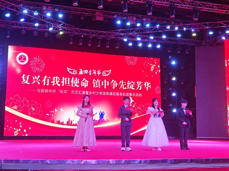 本网讯 4月28日,为庆祝五四青年节,弘扬五四精神,全面落实“健康第一”教育理念,马路镇中学隆重举办“复兴有我担使命 镇中争先绽芳华”五四文艺汇演暨乡村少年宫、课后服务社团成果展示活动,集中展示该校素质教育成效。 本次活动以厚植爱国情怀、传承优良校风、促进学生全面发展为核心目标,坚持思想性、艺术性与育人导向相统一,既是对五四精神的生动践行,也是该校推进“五育并举”、深化课后服务的重要载体。汇演现场节目编排紧凑、亮点纷呈。各班紧扣“传承学校优良传统”主题,以朗诵、歌舞、情景演绎等多元形式,生动诠释对校园文脉的传承与青春担当;社团成果展示活力绽放,充分展现了该校乡村少年宫与课后服务体系建设的育人成效。全体参演学生自信舒展、精神昂扬,尽显崇德向善、体魄康健的新时代青少年风貌,赢得现场师生阵阵掌声。 此次活动为学生搭建了展现自我的优质平台,有效推动了五四精神与优良校风的传承,也让“健康第一”教育理念在校园落地见效。下一步,该校将持续深耕校园文化建设,统筹抓好学生文化学习与身心健康培育,引领全体学子牢记青春使命、勇担时代重任,努力成长为担当民族复兴大任的时代新人。 初审初校:蒋雅琴 复审复校:谌 球 终审终校:熊卫军