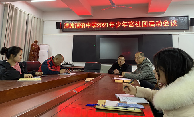 本网讯 3月24日晚,清塘铺镇中学在学校小会议室举行2021年上学期乡村学校少年宫社团辅导员会议,教务处吴雄主任、少年宫专干及全体辅导员出席,会议由团委张剑文老师主持。 会上,少年宫负责人简要回顾了2020年下期少年宫工作,肯定了辅导员们所付出的辛勤劳动,总结了成功经验和所取得的成绩,同时对2021年上学期的少年宫工作进行了部署和安排。少年宫专干就社团建设、活动开展、资料整理等方面工作提了具体要求。最后,吴雄主任进行总结讲话。他指出,乡村学校少年宫涉及艺术、体育、科技、德育、传统文化、劳动教育等多个方面,是学校开展“五育并举,全面发展”工作的重要载体,希望全体辅导员扎实过程管理,提高活动实效,丰富学生业余生活,使少年宫成为一种新型的教育平台,有效的育人渠道,切实满足农村少年儿童特别是留守儿童课外生活的需求,促进学生全面健康发展。(通讯员:张剑文)