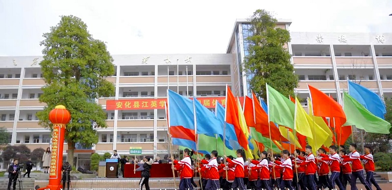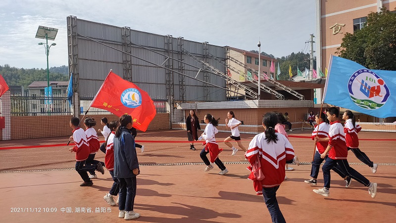 本网讯 11月11日至13日,江英学校隆重举行以“激扬青春庆百年华诞,携手奋进筑健康江英”为主题的第14届体育节暨2021年冬季田径运动会,取得圆满成功。 体育节上亮点多多。开幕式上,彩旗队英姿勃发。 各班队列整齐划一,威武雄壮,尽显学校师生热爱运动、崇尚体育的精神面貌。 还有许多班级精心设计,结合“庆百年华诞”的主题,为师生们呈现出新颖别致的创意,给运动会涂上了动人、闪亮的一笔。