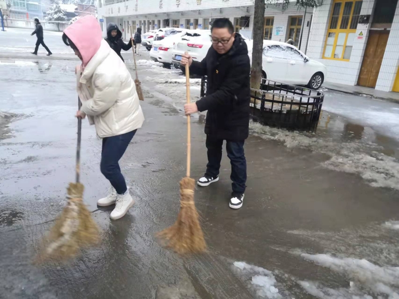 为确保学校正常教学秩序和师生安全,该校全体党员在校长王旭的号召下,第一时间赶赴操场集合,展开扫雪行动,为师生们铲出了一条条安全通道,为学校各项工作有序开展保驾护航。