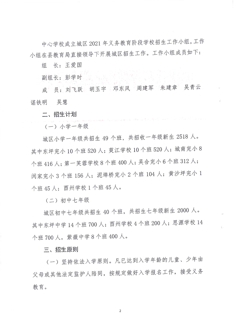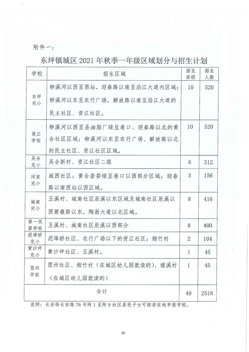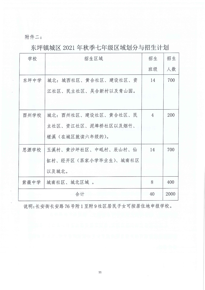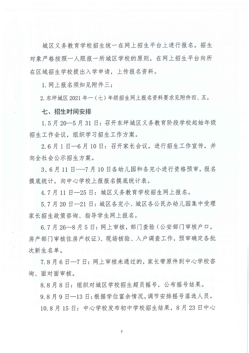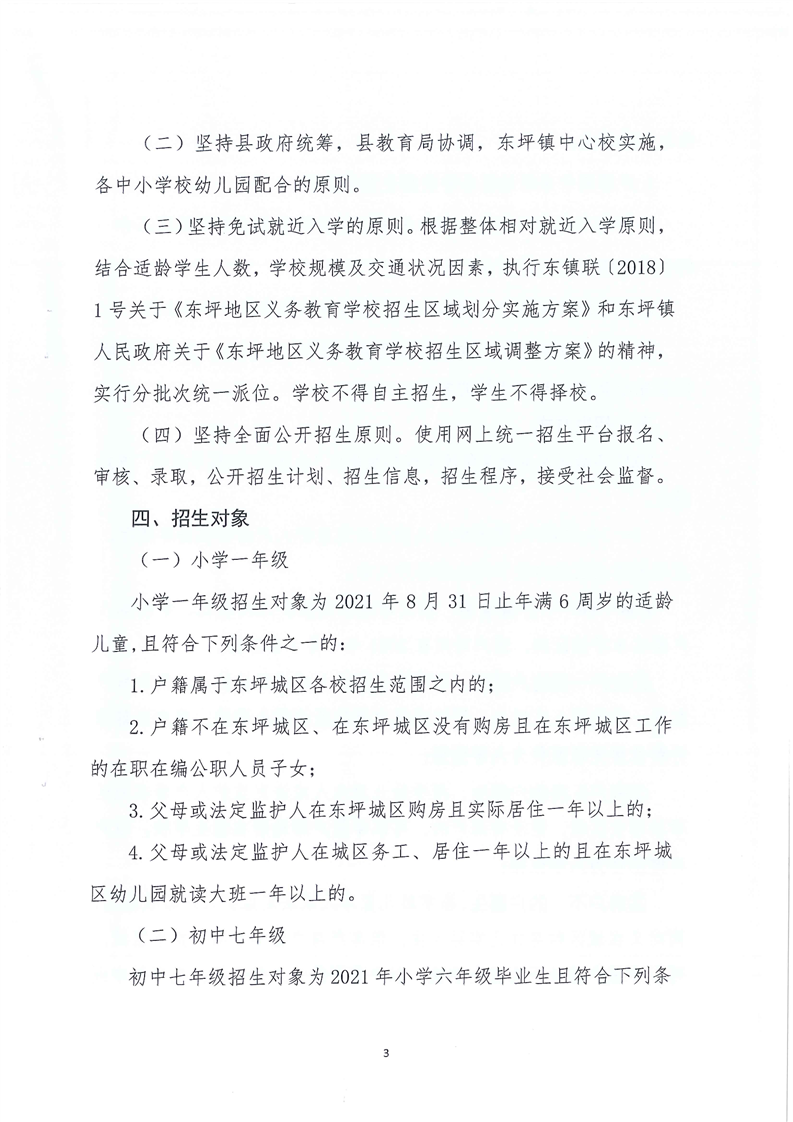 东坪镇中心学校 2021年城区义务教育阶段学校起始年级招生实施方案