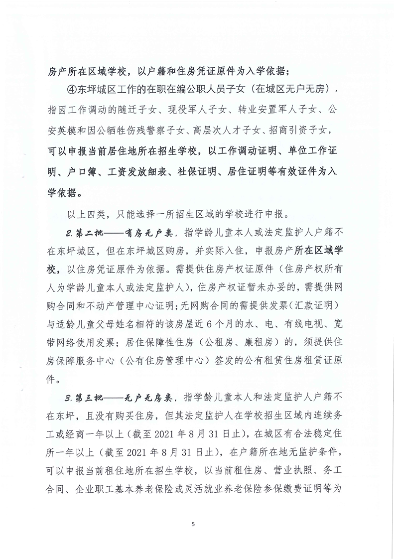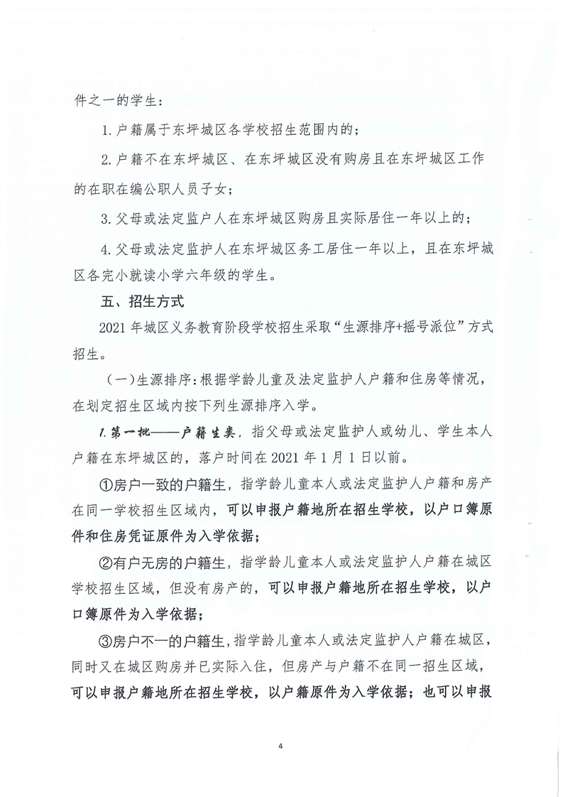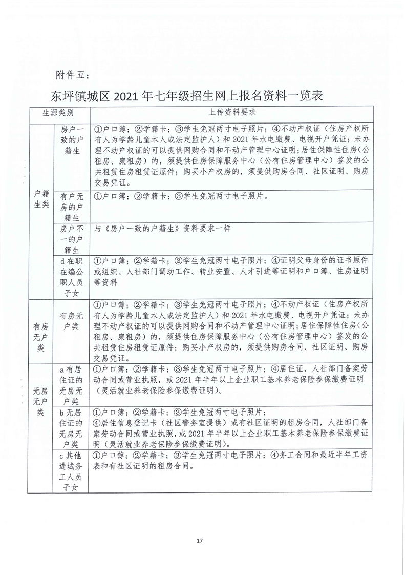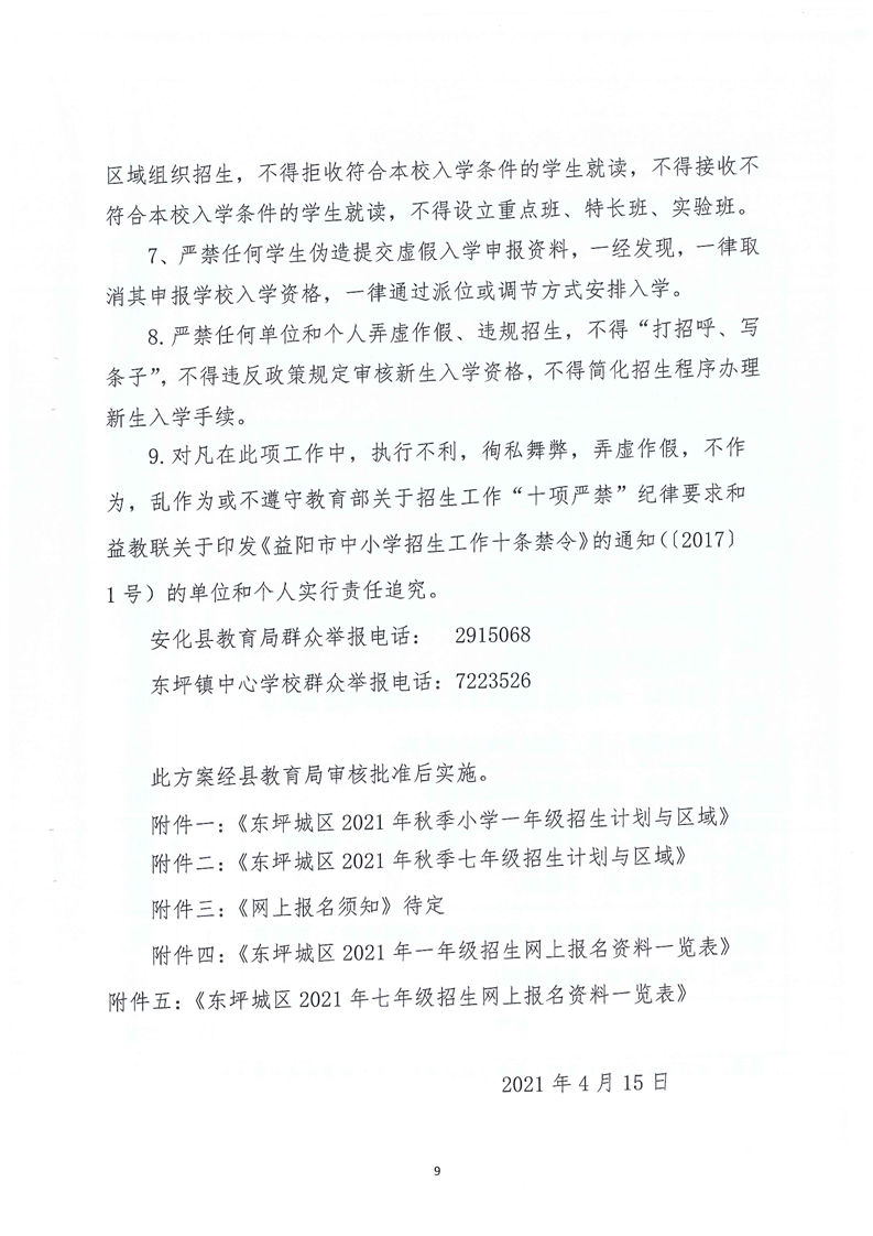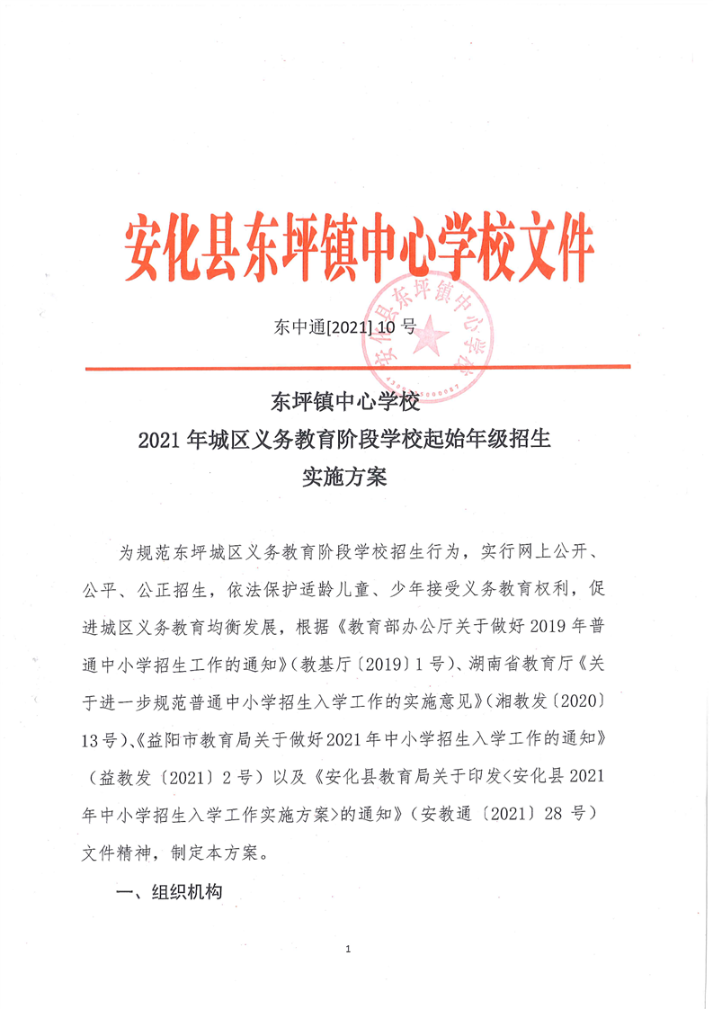 东坪镇中心学校 2021年城区义务教育阶段学校起始年级招生实施方案