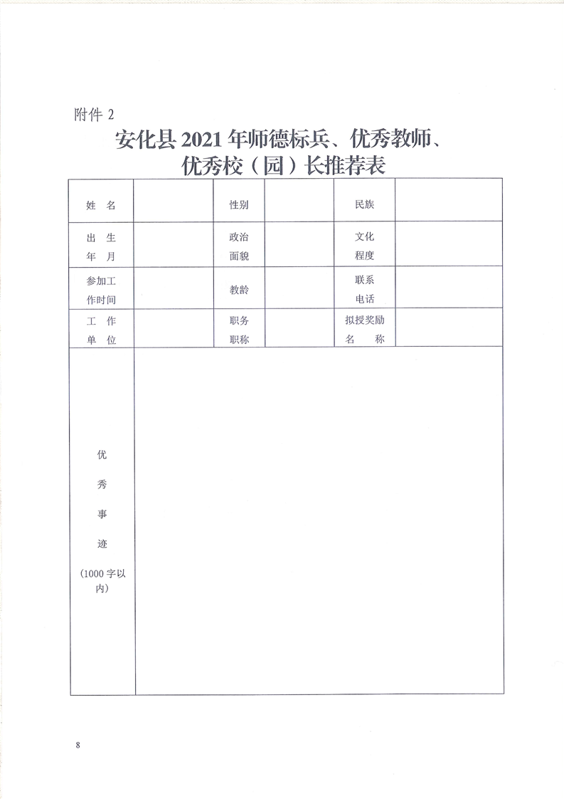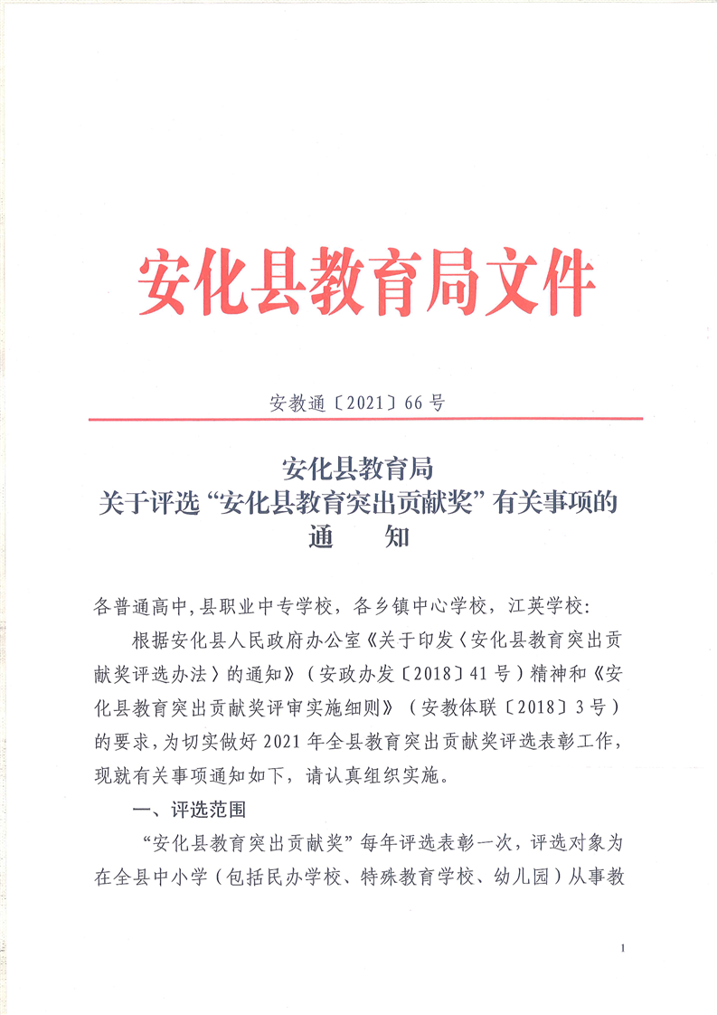 关于评选“安化县教育突出贡献奖”有关事项的通知