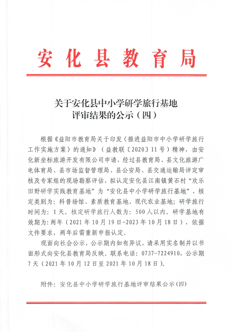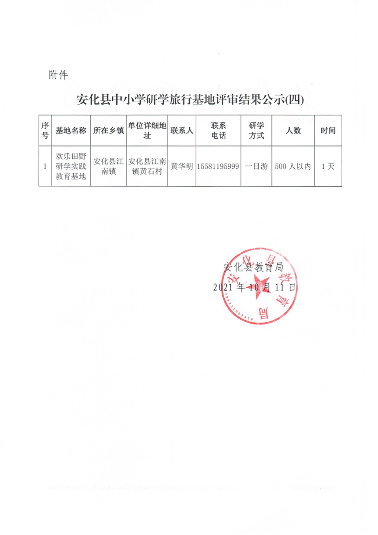 关于安化县中小学研学旅行基地评审结果的公示(四)