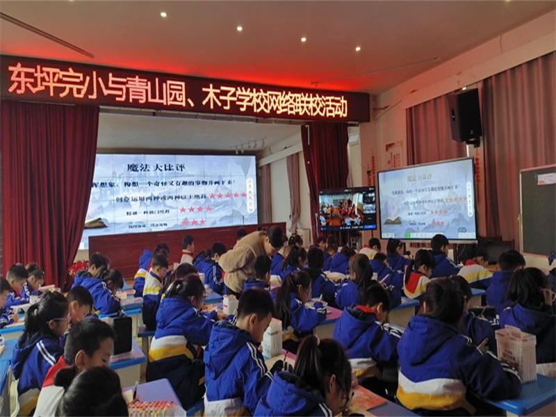本网讯 “青山园完小、木子学校的同学们,你们好!很高兴和你们一起上语文课。”东坪镇完全小学四年级语文老师李萍对着摄像头挥手、微笑。原来,这是东坪镇完小积极响应上级教育信息化要求,主动与农村薄弱学校进行网络联校,开展专递课堂。 3月21日下午,美术老师易卿的课堂上,三所学校学生的绘画作品通过网络同步展示,一幅幅童心与创意兼备的画拉近了城乡学生的心,体育老师罗薇的室内课更是掀起了三校运动PK的热情。 参加本次活动的青年教师王秀云开心地说:“网络联校这样的活动太有意义了!既提升了我的课堂教学能力,还提高了我的信息素养。作为年轻教师,我一定与时俱进,不断学习。” 据悉,该校非常重视教师信息技术能力培养,将网络联校工作列为三月重点,精心部署。教务处从三、四年级组中精心选派20位授课老师,要求授课内容既涵盖本学段所有国家课程,还有极具特色的校本课程。该校校长陈秀丽在专题会议上叮嘱所有授课教师:一定要心中有三校学生,尽量让木子、青山园学校的学生多参与课堂。