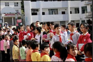 本网讯 爱心是土地久旱时的一场甘霖,爱心是寒冷冬季里的一束阳光。11月13日阳光明媚、风和日丽。燕山第二小学1601班师生和家长共82人来到安化县大福镇新桥完小开展爱心捐赠和助学走访活动。 爱心助学活动由国防科技大学陈飞教授组建的长沙市10帮1爱心助学团队牵线搭桥。1601班的家长及同学们共带来小孩衣物480件、大人衣物170件、书籍510本、玩具154件、体育用品35件、鞋子73双、文具近400件、生活用品35件、牛奶9箱。 下午一点,捐赠仪式开始,首先由伍新民校长致欢迎词,随后是燕山二小家长代表及学生代表发言。第三由黄立君大姐带所有学生做手语操《中华孝道》。最后由燕山二小同学们赠送礼物。捐赠仪式后,1601班师生及家长分8个小组,对特定帮扶的8位贫困学生家庭进行了走访,送去了书包、衣服、文具等精心准备的物资。希望接受帮扶的同学能珍惜好机会,用优异的成绩回报关心你们的人。 送人玫瑰,手有余香。金钱有价,爱心无价。希望大家携起手来,将爱传递到身边的每一个角落。