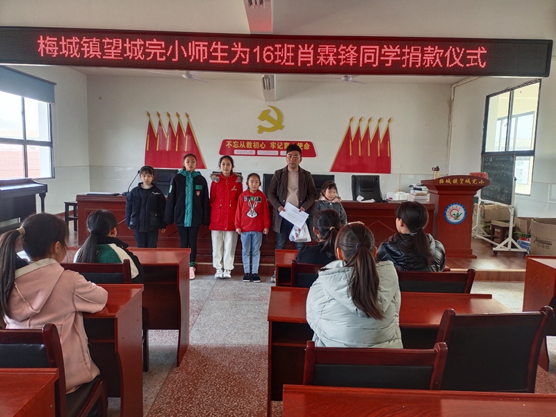 本网讯 2021年下学期伊始,梅城镇望城完小五年级16班学生肖霖锋突感身体不适,经湖南省儿童医院确诊为伯基特淋巴瘤Ⅲ期,9月6日开始多次住院治疗,开始在重症监护室,每天费用不小,几次治疗下来,目前已开支33万余元,好在病情在向好的方向发展,高额的医药费已经远远超出了一个本不富裕的农民家庭所能承受的范围,肖霖锋同学的家庭陷入了困境。 肖霖锋生病住院后,学校领导和班主任杨慧老师到医院探望慰问肖霖锋及其家人,时刻关注了解病情进展情况,转达师生对肖霖锋的美好祝愿。12月15日,该校少先队大队部向全校师生发出了“为肖霖锋同学捐款”的倡议,该校师生迅速行动,并于12月20日周会课举行了现场捐款,各班班长将本班同学的款项收集后统一投入募捐箱,老师们也纷纷慷慨解囊,五毛、一元、十元、一百元、二百元……善款有价,爱心无价,一周时间为肖霖锋捐款23984.5元。涓涓细流正不断汇聚成爱心的海洋。12月21日,学校通知肖霖锋同学的家长来到该校,在学校会议室,举行了一个各班班长参加的简短仪式,该校校长李兴家代表全体师生将全部善款转交到肖霖锋同学的家长手中,并勉励家长,困难是暂时的,望城完小师生将会和他一起在爱的道路上携手同行。 心中有爱,生命才会时时充满动力。家长介绍,目前肖霖锋已从省儿童医院重症监护室转出,积极与病魔继续战斗,每月要化疗两次,预计明年上学期能返回学校继续学习。肖霖锋前方的路还有很长,衷心祝愿他能早日战胜病魔,恢复健康,继续他的求学成长之路。(通讯员 李咏如)