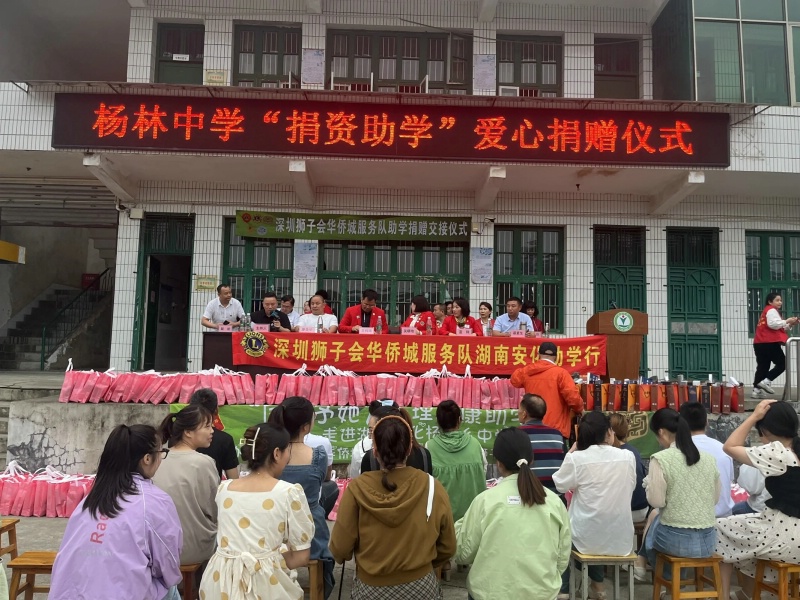 本网讯 5月5日,杨林中学全体师生、家长代表、杨林完小师生代表齐聚杨林中学操场,举行“捐资助学”爱心捐赠仪式。 深圳狮子会华侨城服务队、贝壳服务队、凤凰服务队、深圳东江制药有限公司、湖南安化华美润茶业有限公司等单位的各位领导、爱心人士带着深情、带着关爱来到杨林中学的校园,为中学的每位老师和每一位女学生准备了精美礼品一份,在第一、二节课给所有女学生上了生理教育辅导课。 深圳狮子会区会主席吴晓燕女士、深圳狮子会华侨城服务队当届队长蓝翔女士表示:要把关心和支持教育事业、促进学校发展这份热情化作实际行动,尽一份心,献上一份爱。杨林中学校长谌更生、杨林完小校长瞿鹏分别代表全体师生接受捐赠并赠送锦旗和证书,谌更生在讲话中说:捐助是真诚旳,关爱是无价旳。学校要励精图治,严谨办校。 据悉,此次活动捐赠物品有:学生宿舍中央热水机组一套,价值58708元;教师宿舍电热水器10台,价值10560元;教师会议室空调柜机2套,价值12000元;(凤贝予她)生理健康卫生大礼包200份和生理卫生课,价值10700元;捐助总价值91968元。向杨林完小捐赠学生宿舍中央热水机组一套,价值50000元。