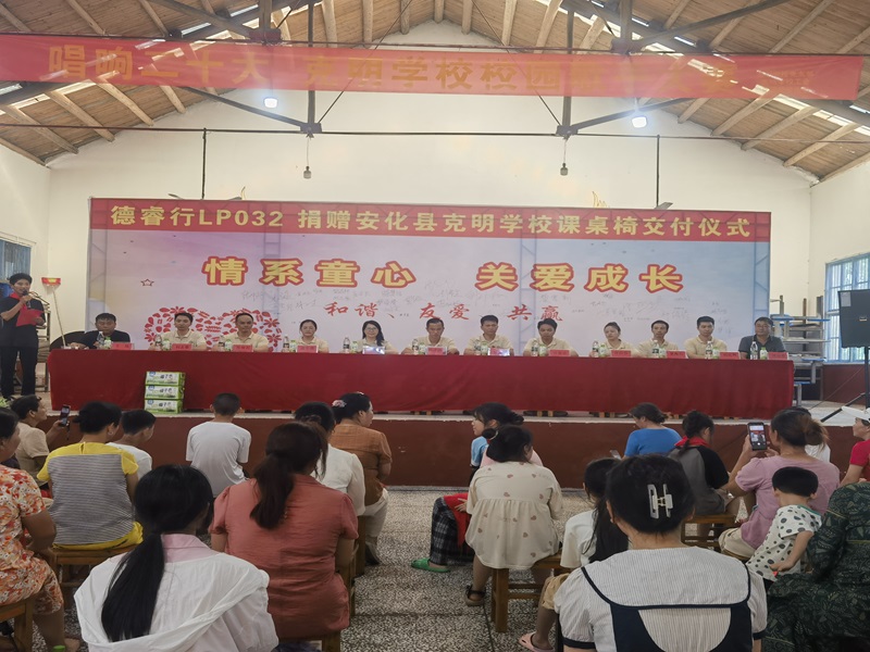 本网讯 7月17日上午,德睿行LP032爱心团队来到了长塘镇克明学校,开展了“情系童心、关爱成长”的爱心捐赠活动。长塘镇中心学校副校长姚迎春、克明学校校长王旭及部分师生参加了此次活动。 活动中,该校学生为德睿行LP032爱心人士,佩戴了红领巾,表达内心真挚的谢意。姚迎春、王旭分别发表致辞,对德睿行LP032爱心团队表示由衷地感谢,并勉励同学们刻苦学习,以优异的成绩回报爱心人士的关爱。德睿行LP032团队代表刘志豪表示,希望通过此次捐赠,为学校教育教学条件提供一些力所能及的帮助,创造更好地教育教学和学习环境,并希望同学们能够奋发图强,用实际行动回报社会。活动最后,德睿行LP032团队负责人与王旭进行了捐赠交接仪式,校方为爱心团队颁发了牌匾。 据了解,此次捐赠活动,德睿行LP032爱心团队共为学校捐赠了课桌椅300套,多功能桌椅50套,教室吸顶风扇64个,羽毛球拍20副,乒乓球20副,篮球10个。(通讯员 董钧)