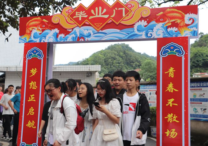 最后,毕业学子们依次通过“毕业门”,走过红地毯,在欢快昂扬的乐曲声中,在学校领导、老师们的目送下,离开母校,踏上归程。(通讯员 李进前)