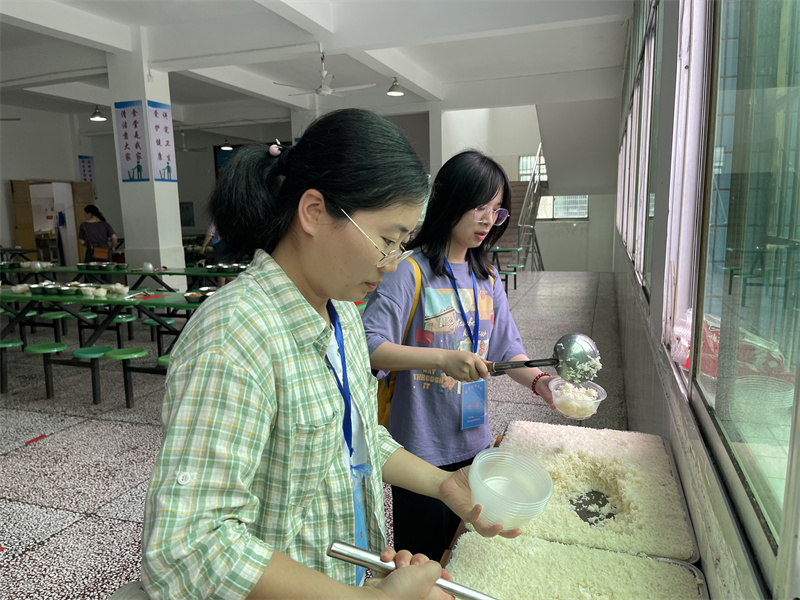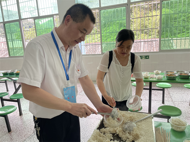 本网讯 寒窗苦读十二载,六月中考显风采。一年一度的中考在艳阳高照、蝉声阵阵中拉开。今年中考期间,大福镇中学党支部第一时间组建“中考党员助力岗”先锋队,为在四中考点参加2022年中考的该校考生盛饭、送水,开展助力中考系列暖心活动。 该校校长肖叔平每天积极与学生食堂沟通,严把饭菜的质量,以高标准严要求做好学生的后勤保障工作,以细心温暖考生,以暖心激励考生,以责任心助力考生。肖叔平和考务人员亲自为考生们盛饭,为孩子们加油鼓劲,让孩子们感受到考试不是一个人的孤军奋战。考生们看到香喷喷的饭菜,看到忙碌的老师们,听到老师们的声声鼓励,句句谢谢成为大福镇中考一道最令人感动、最美人心的风景线。 寄语中考,肖叔平这样说:“中考是同学们人生中又一个崭新的起点,祝福所有的孩子们,愿每一个孩子都能考出好成绩,愿每一个家庭都能实现自己的家庭梦想,中考加油!”(通讯员:龚佳玲)
