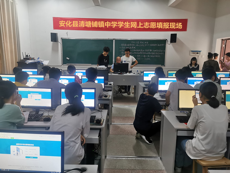 本网讯 7月7日,清塘铺镇中学组织九年级毕业生进行了中招网上志愿填报。 九年级学生先到原教室集合,班主任组织学习《关于中考招生致全市2022年初中毕业生及家长的一封信》《2022年益阳市网上志愿填报说明》,熟悉志愿填报相关规定,强调志愿填报注意事项,9点开始分班依次到电脑室进行网上志愿填报。在正式填报时,每间电脑室均有专业人员与老师进行个别指导,学生与家长自行完成高中学校志愿填报。在完成网上填报后,再打印出纸质志愿,分别由家长或监护人、学生签字确认。 截至下午5点,该校所有毕业生均顺利完成志愿填报工作,为下一步中招录取工作打下了良好基础。(通讯员: 张剑文)
