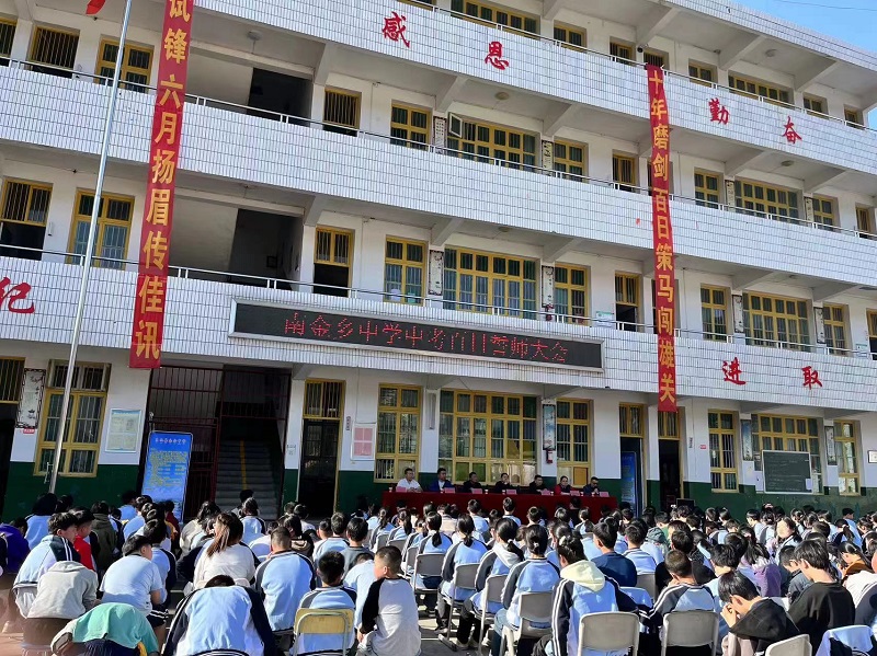 本网讯 3月13日下午,南金乡中学举行百日誓师大会。会议由南金乡中心学校业务副校长李飞翔主持。 誓师大会在庄严的国歌声中拉开了序幕。该校校长谌少准在致辞中谈到了三点建议:顽强拼搏,永不言弃;分秒必争,挑战自我;调整心态,创造奇迹。希望同学们用自己的实际行动,奋战百日,铸就辉煌! 九年级学生演唱“相信我们会创造奇迹”并表演手语,现场反响热烈。八、九年级学生代表,班主任代表,教师代表以及家长代表发言,周容亚老师带领全体教师庄严宣誓,表决心。 南金乡中心学校校长邓明华发表讲话,他希望同学们以坚定的信心,顽强的意志,自强的精神,科学的方法全力以赴地提升自己的实力,强化能力,去摘取成功的硕果。南金乡中学八、九年级所有学生在主持人的引领下进行宣誓。同学们在宣誓中表现出决战中考的信心和勇气。随后,学校各班分别在横幅上签名 该校全体学生都表示在最后的一百天,要奋战一百天,让父母、老师放心,为学校再创辉煌而努力。