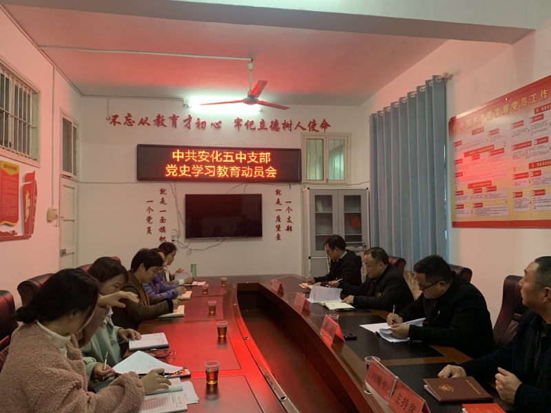 本网讯 4月7日晚,县教育局蹲点干部黄卫东主任、安化五中党支部书记龚加宜以及全体五中党员召开了党史学习教育动员会。