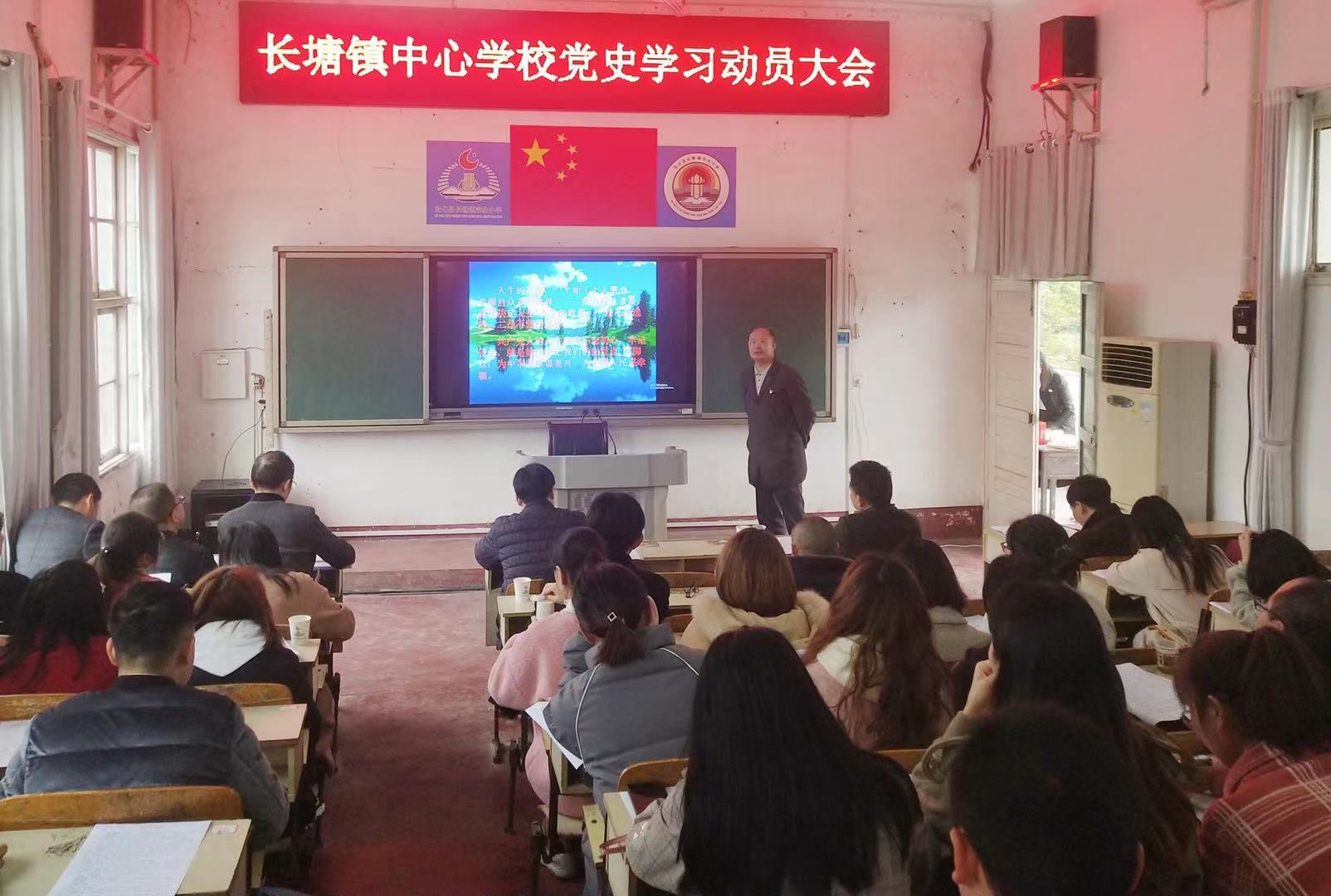 明道理 增信念 担使命”党史学习专题讲座。 在党史学习讲座中,校长周建民围绕党史发展脉络及学习的意义等方面带领教师对党史进行深入学习。并强调要大力弘扬马克思主义学风,把学史明理、学史增信、学史崇德、学史力行贯穿始终,把深学、常思、笃行贯穿始终,全面学习习近平新时代中国特色社会主义思想,深刻理解中国共产党为什么“能”、马克思主义为什么“行”、中国特色社会主义为什么“好”,做到学有所思、学有所悟、学有所获。在学习中,周建民校长要求全体教师一定要知史爱党、知史爱国,推动学校党史学习教育往深里走、往心里走,确保高标准、高质量完成党史学习教育各项任务。并提倡教师要深入学习习近平总书记重要讲话精神,深刻认识党史学习教育的重大意义,抓好党史学习教育,抓好学用结合,努力为广大师生、家长办好教育实事,为学校特色教育发展开新局、谋新篇。 为深入开展好党史学习的教育活动,长塘镇中心学校副校长、党建专干廖志中同志还要求各校党支部深入开展系列党史学习的教育活动,引导党员教师在日常的教育教学中学好党史,发扬教育团队的“三牛”精神。 会议最后,李佳保同志强调,开展好学校党史的学习教育,责任重大,使命光荣。长塘镇各所学校要迅速行动起来,掀起党史学习教育的热潮,抓好青少年学习教育,让红色基因、革命薪火代代传承。