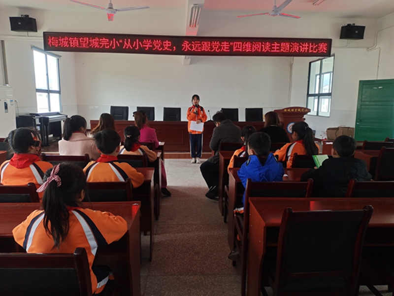 本网讯 4月12日下午,梅城镇望城完小举行“从小学党史,永远跟党走”——四维阅读主题演讲比赛。该校三至六年级各班师生经过前期的精心策划、准备与初赛后,分别派出1名同学参加演讲。因天气原因,演讲比赛在该校会议室进行,选手们身着鲜艳的校服,佩戴红领巾,精神抖擞。10位小选手依次登场,为师生带来精彩演讲,声情并茂,精彩纷呈。《心是那颗最亮的星》《党旗引领我成长》《党的光辉照我心》《百年共产党、少年当自强》等引导大家回忆中国共产党带领人民推翻“三座大山”,建立新中国,实行改革开放的光辉历史,用一个个催人泪下的故事,一段段慷慨激昂的演讲礼赞英雄,解读红色精神,表达少年儿童感受到党的伟大,铭记党的恩情,听从党的教导,今天幸福生活来之不易,努力学习,长大建设祖国,立志做共产主义事业接班人的崇高理想。 该校通过“从小学党史,永远跟党走”四维阅读主题演讲比赛活动,旨在加强学生的爱国主题教育,让他们走进历史,增强自信,筑梦未来。(通讯员 李咏如)