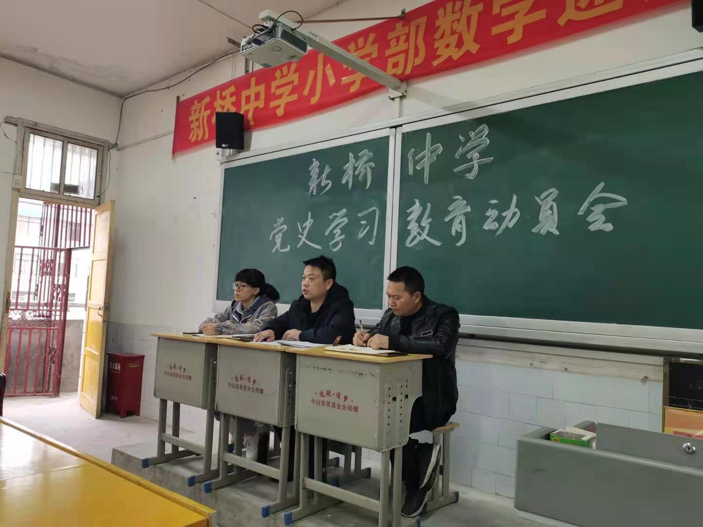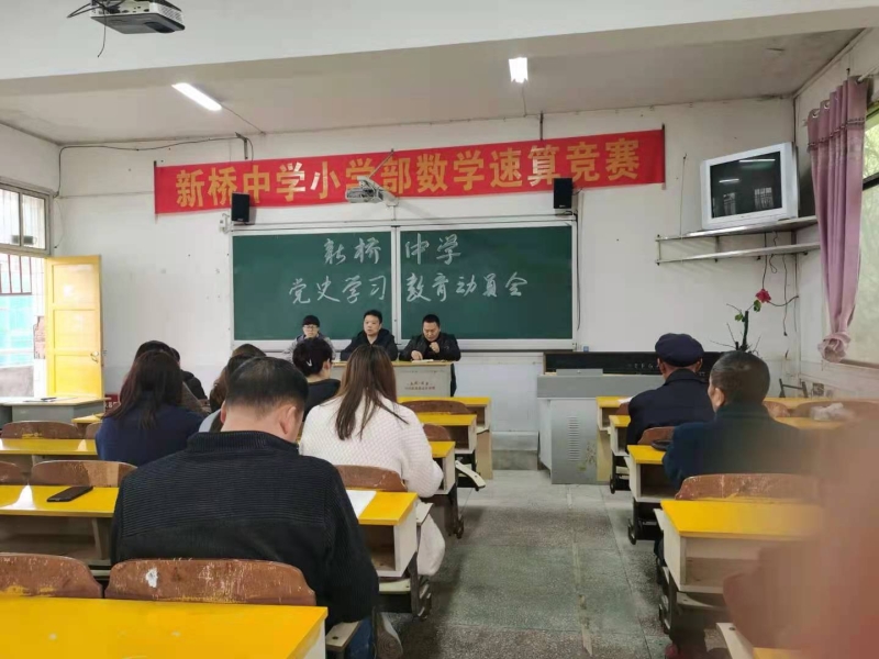 本网讯 4月13日下午,新桥中学全体教师及退休党员教师在四楼多媒体教室召开党史学习动员会。