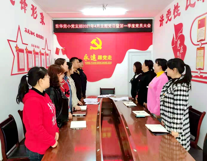 本网讯 4月15日下午,梅城镇东华完小党支部全体党员召开“学习党史党章,传承不朽精神”党史学习教育党员大会。会议由支部委员贺泽红主持。 会议在庄严的国歌声中拉开帷幕,党建专干彭海鹏通报了第一季度党员积分与学习强国学习情况,强烈要求各党员发挥党员模范带头作用,积极主动带领身边教师进行学习。海鹏同志还组织大家重温党史第七章,组织学习贯彻落实全国、全省新冠病毒疫苗接种工作电视电话会议精神,《新冠病毒疫苗接种技术指南》。接着,支部书记夏国荣主讲了第一季度意识形态专题党课《党员干部如何提升意识形态能力》,从为什么要提高意识形态能力、如何提高意识形态能力、提高意识形态能力的原则三个方面进行了阐述。最后,支部委员贺泽红组织党史学习教育动员大会,大会中,带领全体党员观看了党史红色视频《一块老弹片的述说》《生活的支点》;学习了益阳市委办《中共益阳市委办公室关于深入开展“学党史、两重温”主题活动的通知》文件精神;学习了中心校总支书记罗习锋《“学百年党史、兴教育大业”在全镇教育系统党史学习教育动员大会上的讲话》、中心校总支《庆祝建党100周年系列活动方案》及东华完小党支部《学党史 铭初心 庆祝建党100周年活动初案》。东华完小党支部书记夏国荣作党史学习动员讲话,并对第一季度党建工作进行了小结和第二季度工作部署。 参会的党员同志们就党史学习教育的重要意义和目前关心的问题进行了交流互动。纷纷表示,学习党史是回顾革命战争年代党由苦难走向辉煌的艰辛历程,是重温建设、改革、新时代各个历史时期党领导人民创造巨大成就的发展经历,要通过学习党史,进一步坚定理想信念,提高政治站位,学党史、知党恩、跟党走,以更加饱满的精神面貌迎接建党100周年。