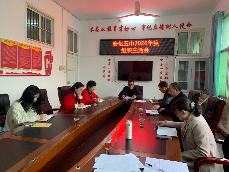 本网讯 4月21日下午,安化五中党支部书记、校长龚加宜组织召开了2020年度组织生活会。安化五中在职党员、发展对象参与了本次会议。支部委员刘耀平主持本次会议。