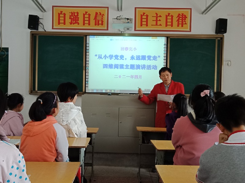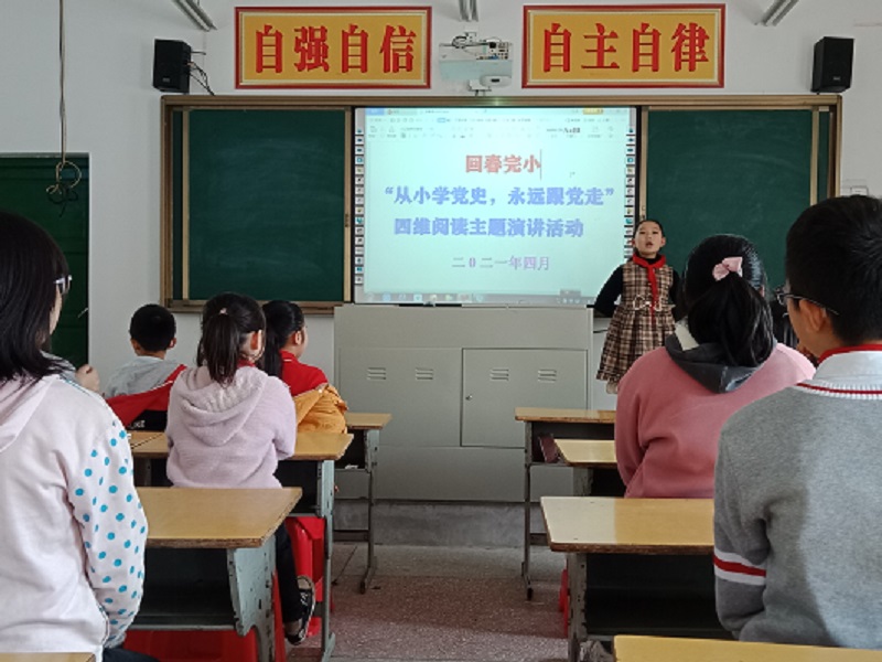 本网讯 4月22日下午,清塘铺镇回春完小在多媒体教室隆重举行“从小学党史,永远跟党走”四维阅读演讲比赛活动。一至六年级共14名选手交锋。 在长达一个多月的准备时间里,各班积极组织学生学党史、知党史;利用作文课、阅读课指导学生查找资料、充实内容;然后进行班级预赛,选拔选手;再反复修改演讲稿,指导选手如何掌握演讲技巧。 今天的比赛精彩纷呈:参赛选手精神面貌很好,二年级的老师还专门为选手化了妆;演讲内容丰富多彩,有《信仰之光》的观后感,有半条被子的温暖,有武汉抗疫的英雄故事,有建党100周年的期望,有读党史的经验分享。选手们高昂的气质、抑扬顿挫的声调、多姿多彩的动作,赢得评委们及选手们的阵阵掌声。经过1个多小时的激烈角逐,杨泽玥等5位选手获得一等奖。(通讯员 杨合坤)