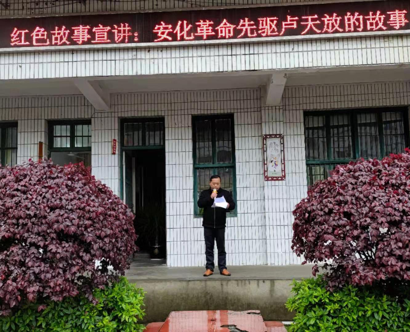 本网讯 4月25日第一节课,长塘镇完小举行升旗仪式,仪式上副校长龚新明为全校师生宣讲红色故事,讲述了安化革命先驱卢天放:短暂人生耀秋千的故事。