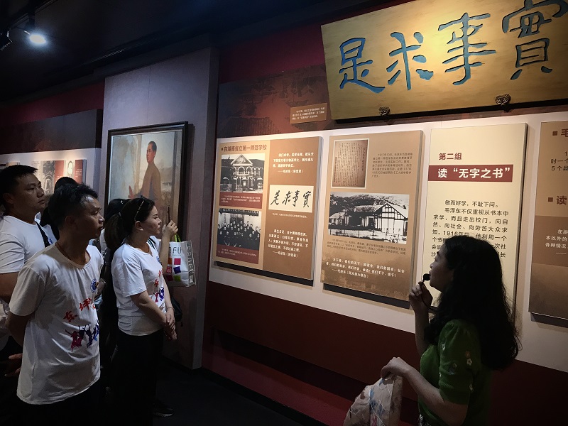 全体党员参观安化一中文武庙古建筑群。青年毛泽东曾到这里调查研究,传播革命思想。建筑内的陈列馆包括“读万卷书,行万里路”“星火燎原、换了人间”“思想灯塔、光照千秋”等四个部分,通过参观,党员们教师们明白了调查研究、问计于民是中国共产党从成功不断走向成功的重要法宝。