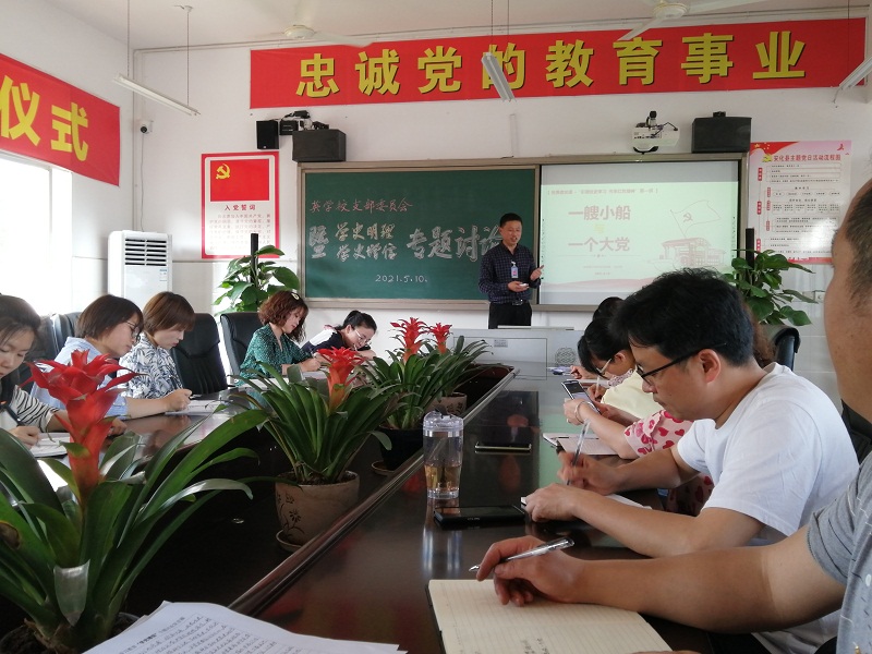 本网讯 5月10日下午第七、八节课时间,江英学校党支部在党员活动室组织5月份主题党日活动,开展多种形式的党史学习教育:收看党史红色视频、第二季度讲党课、开展“学史明理”“ 学史增信”专题讨论等。支部23名党员参加,2名入党积极分子应邀参加这一活动。 本次活动在观看党史红色视频《她把最后一颗子弹留给自己》《新时代的青春之歌》中拉开序幕。为配合党史学习教育,该校党支部书记龙永和以《一艘小船与一个大党》为题,给党员们讲了第二季度党课。党课以设问导入,生动讲述了红船故事,阐释了中共一大召开的意义,概括归纳了“红船精神。”即“开天辟地、敢为人先的首创精神,坚定理想、百折不挠的奋斗精神,立党为公、忠诚为民的奉献精神。”图文并茂的课件,倾情的讲述,仿佛让与会人员又回到了当年那风起云涌的峥嵘岁月,心中受到强烈的震撼。 党课后,党员们分别围绕“学史明理”“学史增信”这两个专题进行了讨论。小学部党员代表文亚玲等分享了“学识明理”的学习体会,中学部党员代表王光明等分享了“学史增信”的学习收获。大家畅所欲言,分述体会,认识在讨论中不断升华。是的,“读史明智”“知古鉴今”。 学习党史,我们可以了解到中国革命胜利的来之不易,倍加珍惜今天的幸福生活,更加坚定走中国特色社会主义道路的必胜信念!大家纷纷表示:在今后的工作中定当发扬革命传统,传承红色精神,永远跟党走,为党的事业不断增添新的光辉,贡献吾辈力量。(通讯员 王光明)