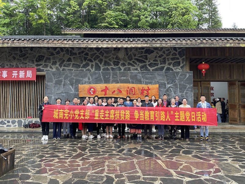 本网讯 5月22日,东坪镇城南完小党支部组织党员教师赴湘西花垣县十八洞村开展“重走主席扶贫路,争当教育引路人”主题党日活动,学习考察十八洞村党建引领精准扶贫和“互助五兴”基层治理模式,切身感受精准扶贫给千年苗寨带来的巨大变化。 到达目的地后,全体成员在村导游的带领下沿着习近平总书记调研考察的路线,追寻领袖足迹,重温入党誓词。大家边看、边听,了解十八洞村通过实施精准扶贫,在基础设施、产业发展、公共服务等方面取得的各项成果。还参观了“十八洞村精准脱贫之路”主题展览厅,了解当年党支部“以党建带动脱贫,用扶贫促基层党建”的先进事例,切实感受十八洞村精准扶贫以来的巨大变化。 参观结束后,城南完小党支部负责人要求全体党员要以这次活动为契机,学习十八洞村基层党员立足岗位、建设家乡的奉献精神,坚守信仰信念,发奋图强,为城南教育发展作出应有的贡献。