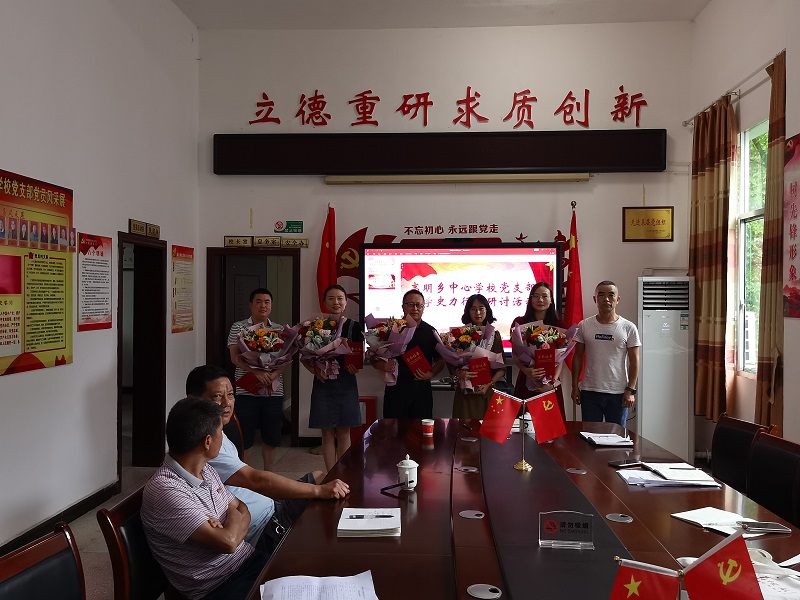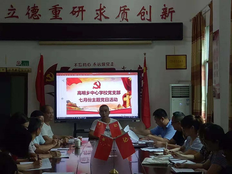 本网讯 日前,高明乡中心学校党支部在党员活动室举行了七月份主题党日活动,支部全体党员和入党积极分子参加了活动。 活动由支部书记、校长夏益武同志主持,共有10个活动步骤,一是由党建专干周飞干同志组织观看红色视频《一刻即一生》《毛泽东用自己的革命活动告诉全党什么是“实事求是”》;二是李小梅同志组织学习党章《第七章 党的纪律》;三是讲党史小故事:孙文同志主讲《毛泽东的拐杖情缘》的故事。四是王桂初、王艳霞两位同志交流党史学习之“学史力行”;五是支部副书记周放弹同志上《学史力行》专题党课。六是王桂初同志宣读《中共高明乡中心学校支部委员会关于表彰优秀党员的通报》;七是党支部书记夏益武同志给周飞干等五名优秀共产党员颁奖。八是夏益武同志讲话,他首先对受到表彰的同志表示祝贺!强调党员教师要以崇仰之情、敬畏之心学习党史、用好党史,做到真学、深学、实学。要求全体党员教师必须牢固树立“四个意识”,坚定“四个自信”,做到“两个维护”,始终在政治上思想上行动上同党中央保持高度一致,在中国共产党的领导下进行伟大斗争、推进伟大工程、完成伟大事业、实现伟大梦想,尽全力谱写好中华民族伟大复兴的新篇章。九是全体党员重温入党誓词。十是全体党员自愿缴纳7月份党费。(通讯员 周放弹)
