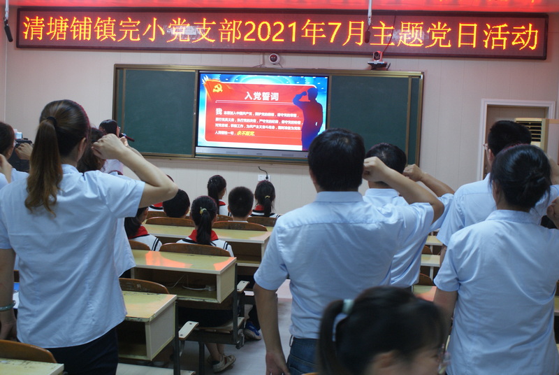 本网讯 7月2日下午,清塘铺镇完小全体党员、优秀青年教师、优秀少先队员代表相聚学校多媒体教室,举行七月份主题党日活动。 本次活动由党支部支书、校长喻拥军主持。首先全体党员高举右手,在党支部书记的带领下重温入党誓词;接着由优秀青年党员教师代表罗娣老师为大家上《把忠诚镌刻在岗位上》的党课:100个风雨春秋,100年的奋斗不息,中国共产党历经沧桑,经历一次次的历史变革,实现一次次的历史抉择。中国共产党,是一个顽强的孩童,一步步走向了今天,一点一滴积累自己的力量,只为人民、谋取更多的幸福!没有共产党就没有新中国!建党一百周年,我们学校的师生积极参与到各种活动中,为党献上一份厚礼,以我们的方式致敬伟大的中国共产党!我们在党的光辉下,以优秀共产党员为榜样,把忠诚镌刻在岗位上,一直奋斗,一直追求,让自己的人生在奉献中升华!最后,全体起立,集体宣誓,让党课进入了最高潮。 活动最后组织大家收看党史红色视频《一刻即一生》《毛泽东用自己的革命经历告诉全党什么是“实事求是”》等。 一寸山河一寸血,一抔热土一抔魂。党课结束后,大家纷纷表示在今后的工作、学习中要自觉提高政治觉悟,立足岗位,敢于担当,以优异的成绩献党成立100年!(通讯员 陈玉芝 罗新初)