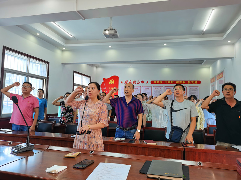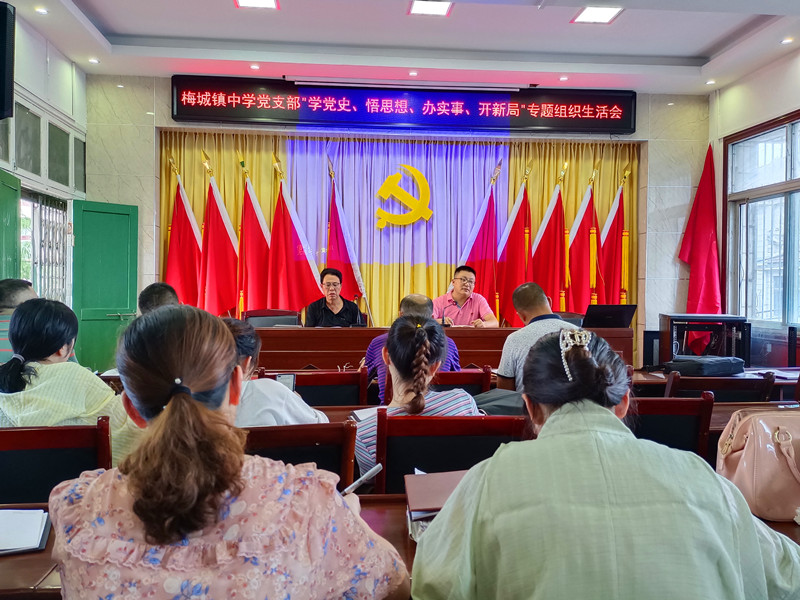 本网讯 8月31日下午,中共梅城镇中学支部委员会召开“学党史、悟思想、办实事、开新局”专题组织生活会。 会上,全体党员面对鲜红的党旗,高举右手,重温入党誓词,重新感受入党的神圣时刻,增强党员自豪感和荣誉感。该校党支部书记喻选民作了述职报告,详细介绍了支部开展党史学习教育的情况、取得的成效、存在的问题以及下半年的努力方向。 随后,全体党员开展学习交流和党性分析,从“学党史悟思想情况、为群众办实事情况、服务大局开新局情况、存在的不足以及下一步努力方向”五个方面进行自我检视并开展批评与自我批评,以达到深化认识、强化担当、共同提高的目的。全体党员同志逐一发言,汇报了近期思想、学习、工作方面的收获提高、差距不足等等。(通讯员:蒋志球)