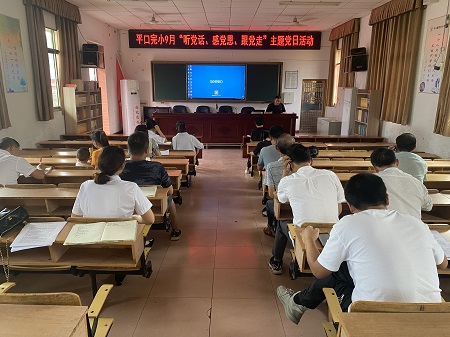 本网讯 9月8日下午4点,平口完小党支部全体党员和入党积极分子在多媒体教室召开“听党话,感党恩,跟党走”主题党日活动。 会议上,李荷花同志带领大家重温党章以此拉开了会议的序幕。夏磊同志组织学习《中国共产党党徽党旗条例》《中国共产党组织建设一百年》(暂未发行)和组织学习关于在全县开展习近平总书记在“七一”重要讲话精神宣讲工作的通知。紧接着总支部书记张彩红授党课《学习贯彻习近平总书记“七一”重要讲话精神:在“学、思、行、悟”中砥砺教育初心使命》,强调党员教师一定要做全体教师的楷模,发挥党员的先锋模范性。再次,刘倩静同志给大家展示新型毒品的种类,解读《中华人民共和国禁毒法》、宣读《全县党员干部和国家公职人员涉毒问题专项整治行动方案》的通知。最后,我们一起观看了红色视频《孔繁森的境界感》《国家相册:高原记录者》。 通过此次活动,大家纷纷表示:在今后的工作中,要将党史学习教育与自身实际教育工作相结合,真正做到学以致用,用以促学,学用相长。