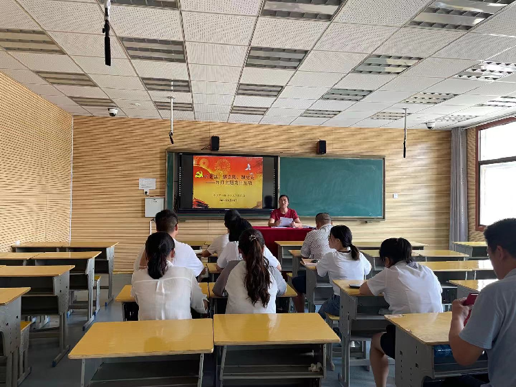 本网讯 9月14日中午13点,平口镇中学党支部在四楼云录播室召开“听党话、感党恩、跟党走”主题党日活动,活动由彭忠德同志主持。 彭忠德首先通报党员出勤、转出党员情况,随后组织学习《中国共产党党徽党旗条例》《关于在全县开展习近平总书记在“七一”重要讲话精神宣讲工作的通知》,要求进一步规范党徽党旗制作、使用与管理,增强党的凝聚力、战斗力,激发党员教师不忘初心、牢记使命的教书育人初心,在党员、教师队伍中分层分类宣讲习近平总书记“七一”讲话精神,落地生根增进实效,形成减负增效新时代的教育伟力。支部书记蒋苏会结合教育教学工作实际为党员同志上党课《学习贯彻习近平总书记“七一”重要讲话精神》,告诫全体党员教师牢记立德树人根本目的,恪守教书育人根本宗旨,全身心为学生服务,潜心钻研,为平口教师奉献自己的青春与才华。会上,各党员教师还分享了假期党史学习心得体会,组织学习了禁毒知识,同时也观看了红色视频《孔繁森的境界感》《国家相册:高原记录者》等。(通讯员 彭忠德)