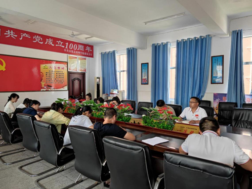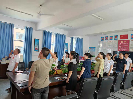 本网讯 9月15日下午,东坪镇酉州学校支部在教学楼三楼会议室举行“感党恩、跟党走、正师风、铸师魂”九月份主题党日活动。主题活动由陈锐主持。教科室主任黄厚才带领全体党员重温了《入党誓词》;主讲第三季度党课《感党恩、跟党走、正师风、铸师魂》,他在党课中讲到作为党员教师要把建党精神——“坚持真理、坚守理想、践行初心、担当使命、不怕牺牲、英勇斗争,对党忠诚、不负人民”继承下去发扬光大。要把初心和使命变成锐意进取、创新求实、埋头苦干、真抓实干的动力。党员教师要先自己修道,修道立德必须立足于爱岗敬业、关爱学生、以身作则、钻研业务。陈锐组织全体党员观看了党史红色视频《孔繁森的境界感》,感受到了一个共产党员爱的最高境界是爱人民;组织全体党员学习了《中国共产党党旗党徽条例》,知道了党旗党徽的几种规格以及什么情况下使用; 该校新任党支部书记王飞讲话:作为党员要牢记党员身份,要起到先锋模范带头作用。工作当中要讲原则,牢记入党誓词随时准备为党和人民牺牲一切。作为党员教师,在教研教改上执行课改理念,抓实高效课堂,积极进行小组建设,工作当中起到积极带头作用,做到有所为。