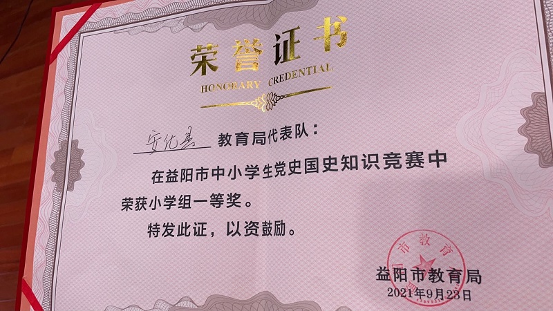 江英学校:陶奥同学获党史知识竞赛市级一等奖