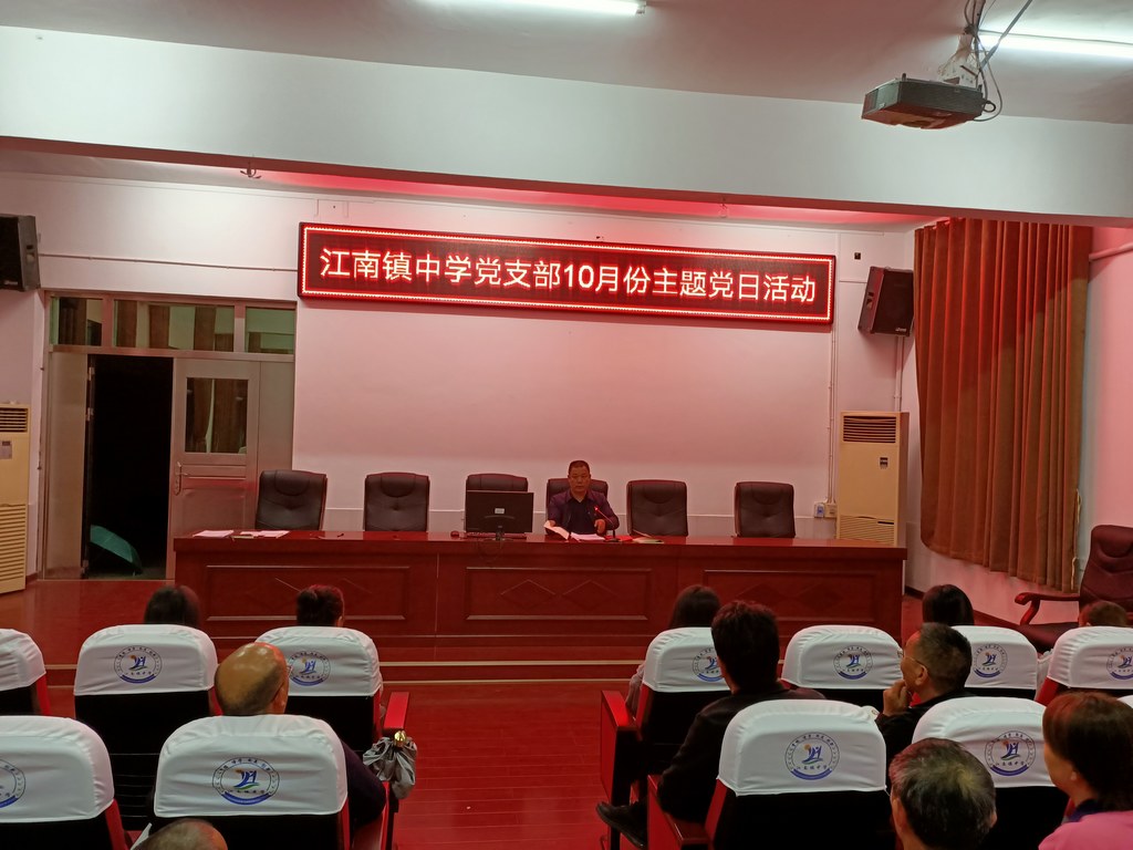 本网讯 10月9日晚上,江南镇中学全体党员聚集多媒体室,参加十月份“争创优秀,淡泊名利”主题党日活动。通过观看党史红色视频《“让衔”英名天下扬》,许光达大将一生中多次‘让衔、让级、让位’的‘三让’精神深深触动了在座的每一位党员、干部。观看结束后,陈良支书为在场的党员干部作总结发言:“学习党史,要求我们用党的光荣传统和优良作风坚定信念、凝聚力量。许光达同志的‘三让’精神,是我们共产党人的一座精神丰碑、一座思想灯塔。各位同志要自觉学习‘三让’精神,在荣誉、利益面前不争不抢,在责任、重担面前当仁不让,在教育教学工作中敢于创新争优,坚决服从组织安排。” |