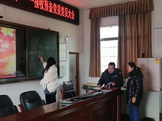 本网讯 12月20日中午,平口完小党支部组织召开接收预备党员大会,全体党员和入党积极分子参加了此次会议。 本次会议在全体起立奏国歌中拉开了序幕。主要议题是讨论入党积极分子张石平同志转为预备党员一事进行了讨论,张石平同志宣读了入党志愿书以及介绍个人基本情况、入党动机、个人履历、政治表现等。两名入党介绍人傅群芳同志、张人科同志分别对张石平同志的情况作了详细介绍,并对其能否入党表明自己的态度。 党支部组织委员夏磊同志宣读对申请入党人张石平同志的评价意见,并代表支委会向党员大会汇报对其的培养教育考察情况,宣读政审报告。大会充分发扬民主,全体党员本着认真负责的态度积极发表意见,表明自己的态度。到会党员对张石平同志能否入党以无记名投票的方式进行表决,全票通过。 张石平同志在会上说道作为一名新党员,感谢组织的培养和信任,今后的工作中要发扬优点,改正不足,勇于创新,虚心向老党员学习,继续努力提升,以更加认真积极的态度投入到工作学习中去,争取早日成为合格的共产党员,为教育工作多做贡献。支部书记张彩红代表党支部宣读综合考察意见,同意吸收张石平同志成为中共预备党员。