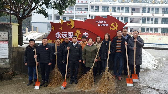 本网讯 2月23日上午,乐安镇完小党支部全体党员、积极分子、部分教师进行入学公路、操场积雪清除义务劳动。