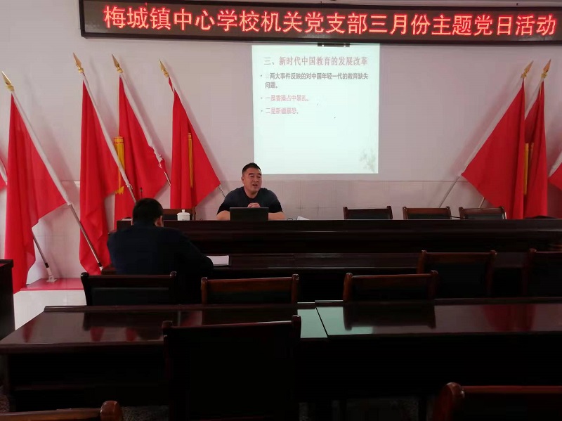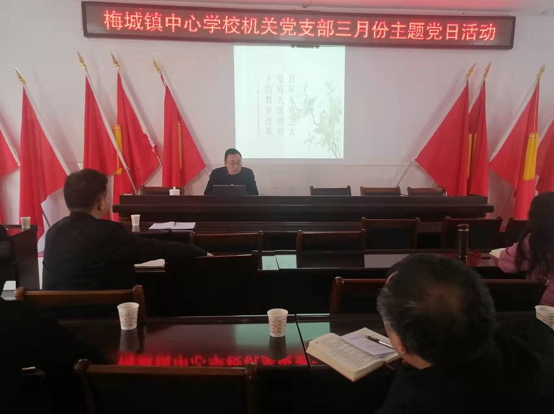 本网讯 3月15日,中共梅城镇中心学校机关支部委员会举行三月份主题党日活动。党支部委员姚建祥上党课《百年未有之大变局,大国博弈下的教育改革》。 姚建祥引用国际评论员的观点,结合自己的理解,对当前国际热点俄乌战争、中美博弈背景下的中国周边危机与应对、台湾危机爆发、防止新冷战局面形成等问题进行了分享。并面对国际风云,从国内两大事件香港占中暴乱与新疆暴恐,对中国教育改革提出了深刻的思考。 中共梅城镇中心学校机关支部委员会书记贺荻总结讲话指出,作为新时代的人民教师要不断加强意识形态学习,多关心国内外大事,树牢“四个意识”,坚定“四个自信”,坚决做到“两个维护”。要以政治家的理想、国家的信念与人民军队的意志坚守教育的主阵地,牢记为党育人为国育才的使命,加强党的领导,强化红色引领,做实思政教育,积极深化课程改革,为努力培养优秀的社会主义建设者和接班人不辱使命,砥砺前行。